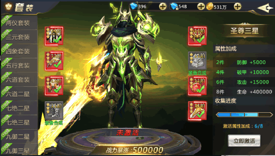 当然,玩家先要在主界面左侧的任务消息栏里接取【套装收集】支线任务,然后在激活套装后去领取经验和绑钻就可以了。
