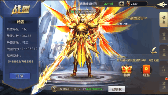 2、离线挂机的收益要比在线挂机的收益高,所以建议玩家选择离线挂机,并且搭配1.5倍经验药水;