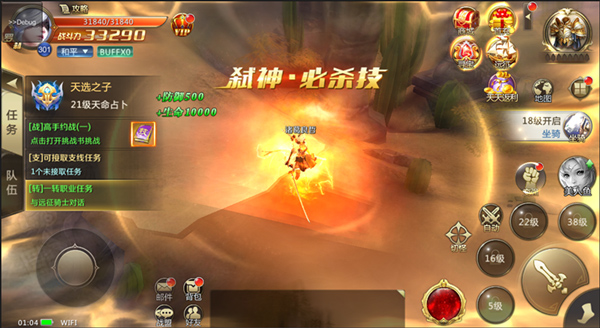 弑神系统是混沌起源的特色玩法,通过弑神技能,玩家可以获得短暂的高额属性加成。PK打怪无人能挡。弑神技能还可以升级,完成系列弑神任务即可升级,升级后可以获得更强力的加成,并且伴随效果改变。由火焰效果变成冰霜效果。弑神游戏表现华丽夸张,动感十足,小伙伴们快来体验吧