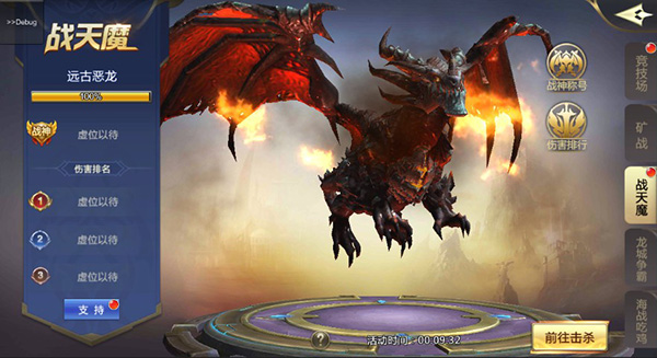 天魔入侵,我们要守卫自己的家园。战天魔活动每周一、二、三晚上开启,每3天为一个周期,周期内击杀远古巨龙可获得战神称号