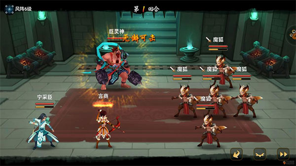 上阵:主角、巨灵、宁采臣、小蝶(用于抵挡伤害,可换任意输出或肉盾)