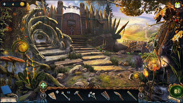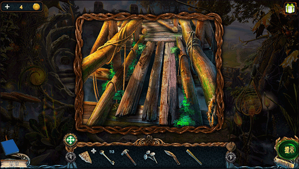8、拿出钉子、木板和锤子,点击空缺处,桥就修好了;