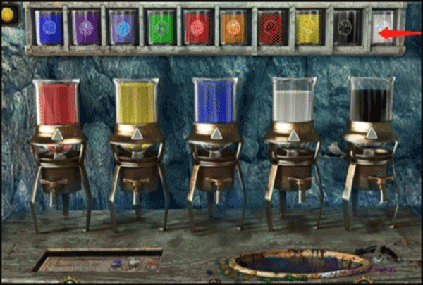 4、配颜料时,将上面的烧瓶拖动到下面的颜料瓶下面,然后根据颜色旋转颜料瓶的按钮来配色。