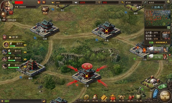《攻城掠地》分魏、蜀、吴三个国家。三个国家的玩家,可以在拥有多达247个城池关隘3个蛮族城的世界地图上,自由地调兵遣将进行移动或攻击。当玩家移动到没有所属的城池时,攻击其中的NPC可占领城池;而移动到他国城池,就必须击败他国玩家才能占领城池。所占城池越多,则军资奖励越多,而在国战中击杀其他国家所属城市的玩家数量越多,就能跃居登上世界地图杀敌榜,尊享万人景仰的荣耀。