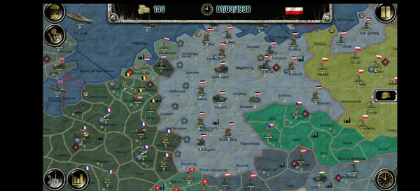 2、第二次世界大战军事行动的详细地图。从几十个国家中选择,在欧洲或亚洲对抗冲突。更新将带来新的国家和地图!