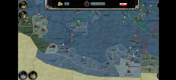 初始兵力:21个陆军师,一架轰炸机,四架战斗机,5条船