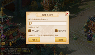 2、点击选项“我要下战书”,然后输入要挑战的玩家ID即可,战书下达后对方将会收到系统邮件通知。