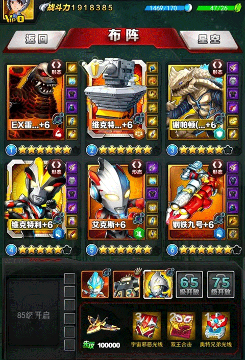 3、玩家可以通过点击【注星】来给石像充能,每次注满星槽,作为人间体之一的玩家自己的属性也会成长。当一个石像获得的总星数满时,石像被激活。此时会解锁迪迦的新形态。值得一提的是,每当星数充满一次能量条,都可开启一个宝箱奖励。