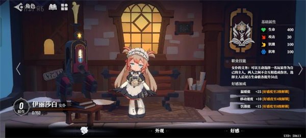 女仆,技能是选择一个人当主人,两人不能互相伤害,且两人增加50生命,这是个比较极端的角色,选择的人好,那就可以优雅躺平,选的是狼,那就原地去世,简单来说就是抱大腿,但千万别抱错了,推荐度S。
