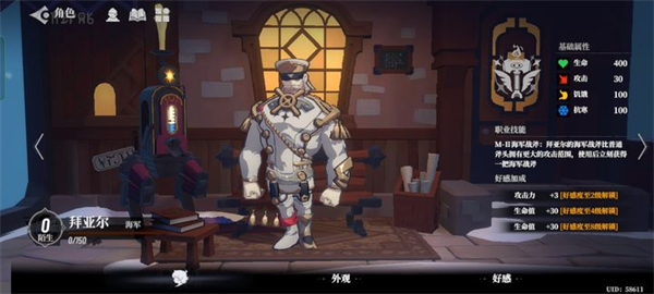 海军上校,外号海军,技能是自带海军战斧,相当于加强了攻击范围的金斧,省下了制作斧子的材料,前期更是横着走,打的队友对手全都死光,正面作战能力很强,推荐度S。