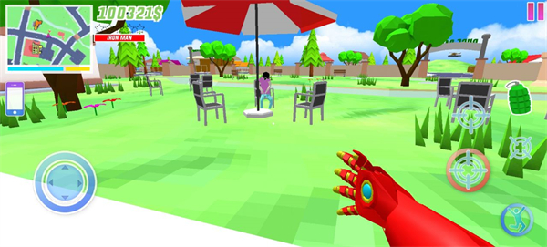 沙雕模拟器钢铁侠版是一款魔性沙雕的沙盒探索类手游,游戏的玩法拥有高度的自由性,玩家们可以驾驶车辆、射击武器、进行骚扰和抢劫等行为,可以在游戏中自由探索和行动,没有固定的任务和限制,可以随心所欲地进行各种活动,给与玩家提供了广泛的选择和多样的玩法,就像是精简版的gta。