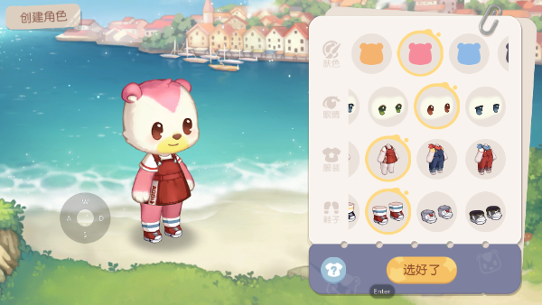 2、开始创建角色,可给小可爱选择自己喜欢的肤色、眼睛、衣服以及鞋子。