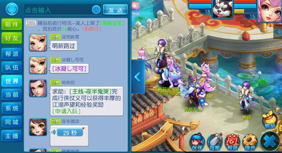 一、频道聊天点击左下角“友”字,即可点开聊天栏,在聊天栏选择相应频道,在上方输入想说的话点击发送即可。