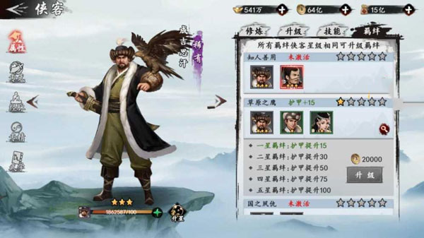 同时,如果获得了成吉思汗,就可以用其换掉朱子柳,成吉思汗作为稀有侠客,品质要比朱子柳高,同时还能和托雷、华筝构成三人羁绊,对于新手玩家来说是一个比较推荐的侠客角色。