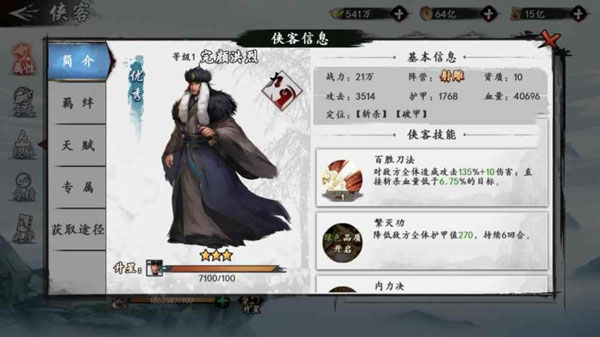 其中,丘处机这个史诗侠客是可以作为主要培养的,原因有三,一是角色品质不错,二是战力不俗,三是中后期可以和马钰、王处一等构成羁绊。