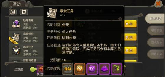 不过个人玩下来感觉还好,因为里面有很多活动都是可以挂机做的,像酋长任务、悬赏任务、宠物探索、失落的碎片等,这些对玩家要求都不大,但是奖励却颇丰。另外想尝试一些有趣的玩法,可以去角斗场1V1,组队前去挑战蛮荒凶兽、或者加入部落战也很意思,休闲小游戏躲避角斗鸟什么的也很刺激!