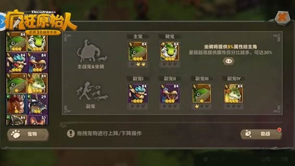 每个角色可以同时上阵一个主战宠、一个坐骑,这里可以给主角提供20%的属性加成,另外还可以上阵4个副宠,副宠可以有三个助战宠帮忙,提升战斗力,且每个宠物都有自己的性格、属性和装备技能,骑乘的宠物无法释放技能和攻击,所以在战斗中需要合理安排上阵宠物,并根据对手随机切换合适的职业就行战斗,策略上就复杂了许多。