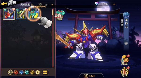 4、在魔神面板可以对魔神进行培养,进行阵容搭配。