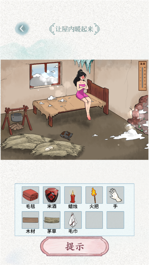 抖音上最近超火的文字脑洞游戏,真的让我着迷!界面简单清爽,玩法也很有趣,每次都能解锁新关卡,感觉特别有挑战性。刚开始玩的时候有点懵,但慢慢发现其实操作很简单,就是用手指点点就能完成任务。比如有一次任务是帮女主取暖,我得把木材拖到窗户上,点燃篝火,再给女主送吃的喝的,最后连猫都要擦干净才算通关,真的有点意思。