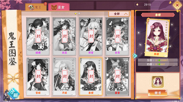 4、不同的鬼王与巫女图鉴还分为不同的品质,按蓝、紫、橙、红、粉分类,品质越高的图鉴,越难激活。不过只要忍者大大们积极参与我们的活动,相信激活全部的图鉴也是指日可待。