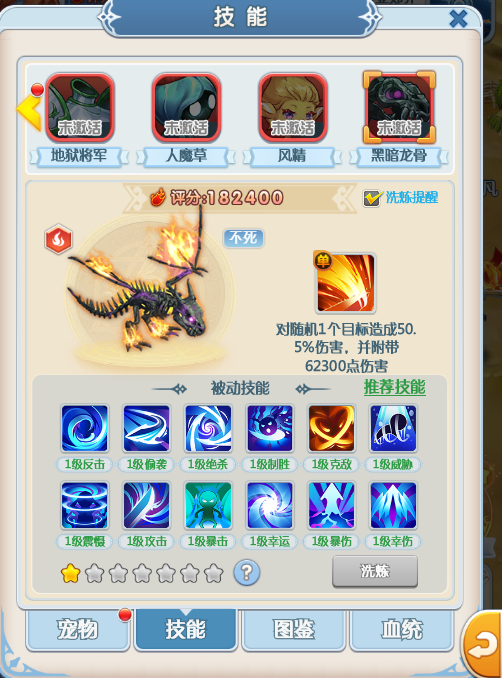 3、顶级神宠召唤作战:完美复现了曾经巅峰战力的神宠,不死系之王黑暗龙骨、四大精灵之中的火精和风精也已登场,高档的改僵“地狱将军”以及极品人魔草也已到来。作为战力天花板的黑暗龙骨,最终更是有整整12种技能,一旦全部洗练出,实际战力提升对冒险团队可是非常大,不弱于BOSS级怪物。