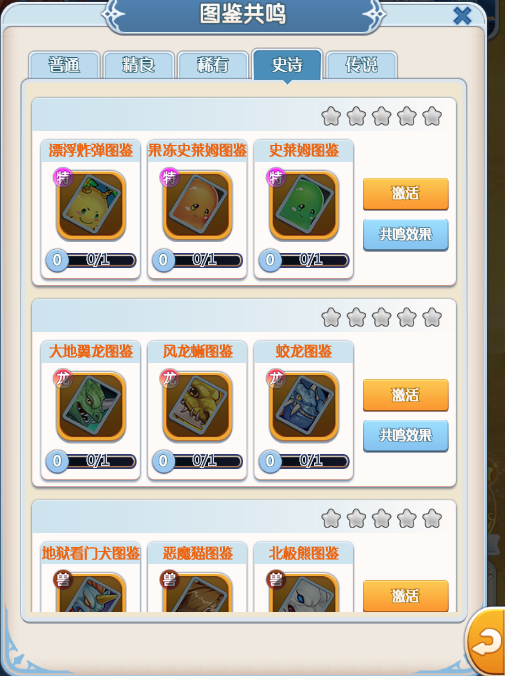4、召唤宠物收集图鉴:冒险路上的宠物数量也是非常多,当收集到足够的宠物时,更有高几率获取到宠物图鉴,收集宠物对应的图鉴,更是可以提升高额的战斗力,不同的宠物图鉴更是可以产生共鸣效果,想同时集齐三大史莱姆来看看是什么隐藏效果么?