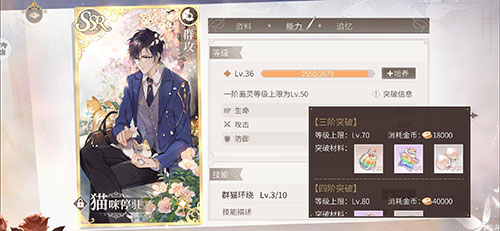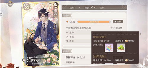 猫咪停驻从三阶升到四阶,需要消耗40000金币,40瓶高阶五色瓶和20块抹茶饼干。