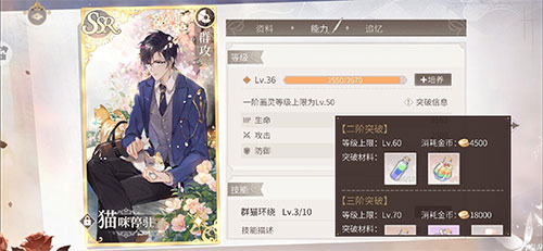 60级突破所需材料:猫软糖中阶*20、猫软糖高阶*6、指南针*20、金币18000