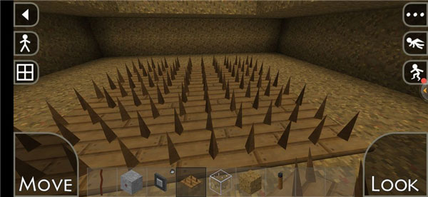 7、这就是做好以后陷阱,家门口做上一个再连到家里面,白天丢肉勾引狼进来,等到月圆变狼人按下按钮刺钉出来,刷钻石简直不要太容易