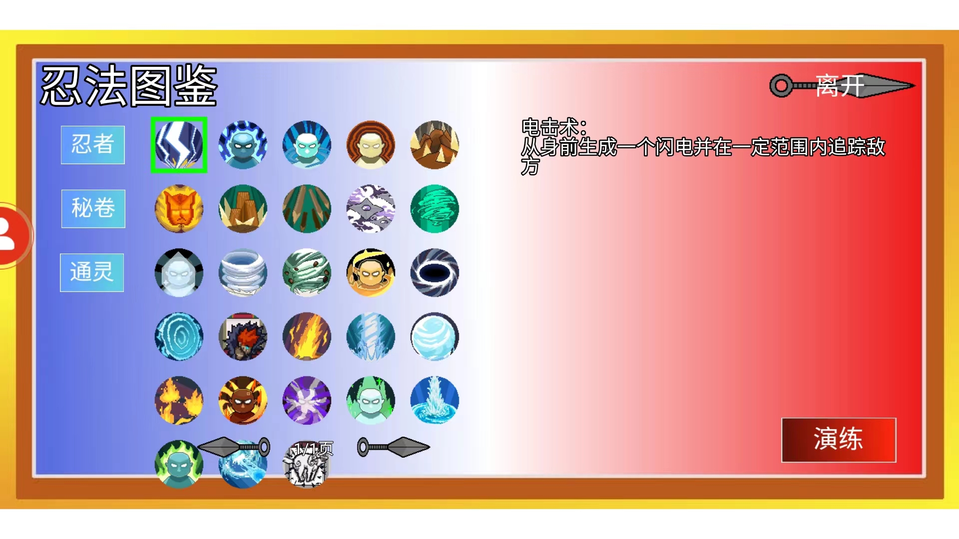 3、进入【图鉴】界面,我们可以看到每个忍者的技能属性,以及秘卷和通灵的相关说明,