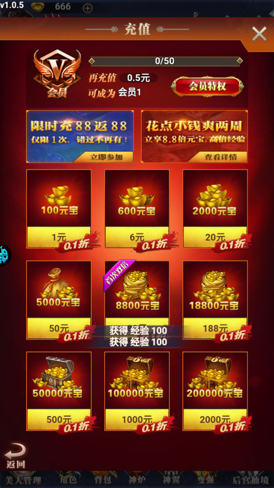 玩家在充值页面,可以获得限时充88返88的限时大优惠
