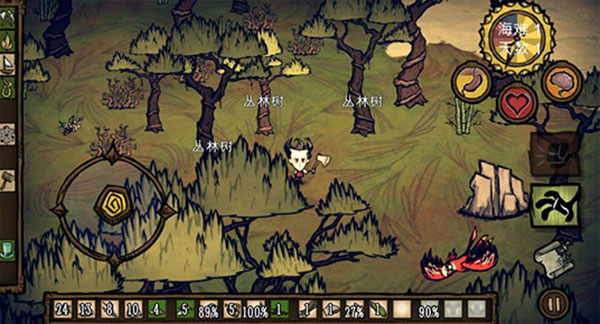 游戏中,玩家需要扮演威尔逊,在随机生成的地图上收集资源、建造建筑,并解开岛上的谜团。游戏提供多种地形如沙地、丛林、矿场等,每个地形都有独特的物资和挑战,比如夜晚涨潮的沙地或危险的丛林。此外,游戏还有四个季节的变化,不同季节会带来不同的资源和怪物。