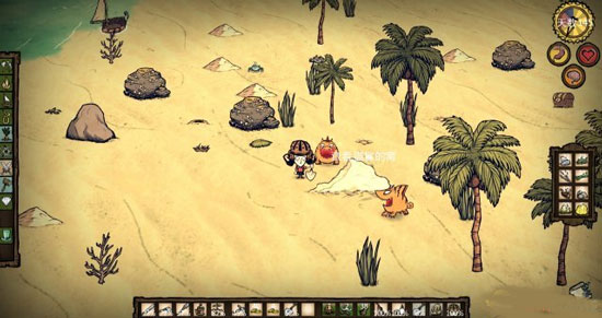 前期:食物的话在初始岛里可以多捡种子和浆果撑一会,尽量早点在初始岛做好船出海。也可以手撕点蝴蝶回回血和饥饿。实在不会或懒得探图可以找找的烧出点木炭来做锅,安个临时点。