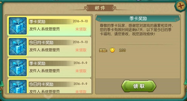 【9】买了季卡和月卡,不错!每天200元宝呢,每天早晨领取元宝,很好很开心!但为啥别的月卡季卡党,元宝总比我多呢?