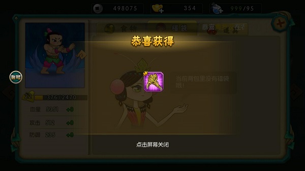 跌跌撞撞打到第六关关底,哇塞,可以打法宝福袋了!赶紧的,所有体力都招呼上打福袋,什么娃娃升星啥的都不管了。