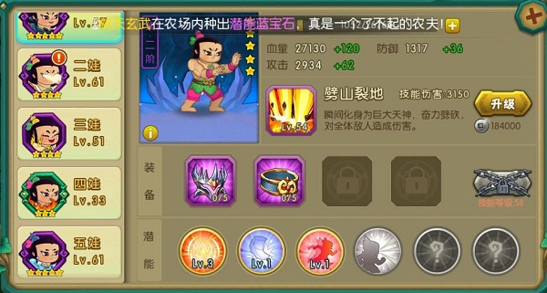 这个估计是大家的通病,在开局只有123娃的时候,疯狂的给大娃三娃穿装备,为啥呢?