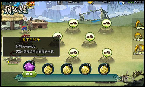 副本也可以暴出不同类型的种子,种植之后可以产出不同的资源,比如银币、食材以及潜能宝石。银币的作用就不用小编多说了,食材可以在玩家们解锁烹饪功能后制作美食增加经验,潜能种子最为宝贵,是培养葫芦娃的必备道具,只有在高等级的组队副本才能暴出。并且通过相应关卡,一键种植与一键收获功能也可以解锁,农场玩法将更为轻松。