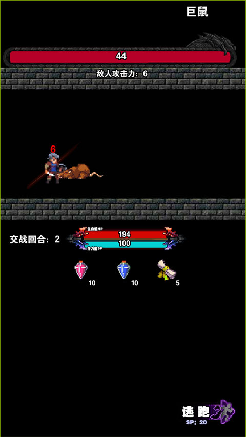 4、遇到敌人会自动展开回合制攻击,如果打不过可以点击右下方的逃跑;