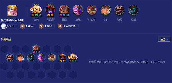 1、福星阵容是在lol云顶之奕S4赛季出现的,在当时福星也是深受一批玩家的热爱,因为玩福星特别的有意思,而且发育的也很快,由于金铲铲之战福星的到来,这里小编给大家推荐阵容:火男、塔姆、布隆、安妮、猪妹、瑟提、卡特和莎弥拉,主要输出位是瑟提、卡特和莎弥拉。