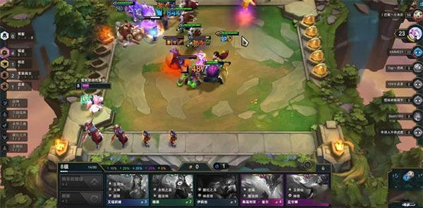 在进入游戏后,参与本局比赛的八名玩家的小小英雄会共同传送到选秀区域,在选秀区域抢到心仪的装备或棋子后(在每个阶段的第三个小回合都会有选秀环节)八名玩家会各自传送到各自的棋盘上。