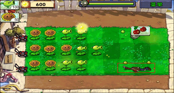 2、由于在房顶,所以直线的豌豆射手不能用了。