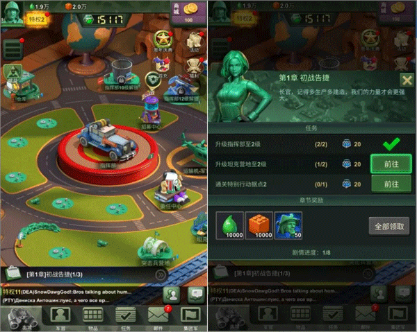 在前期,尽快提升你的指挥部等级非常重要,你需要通过解锁指挥部来开启新的功能和玩法;另外升级之前如果有激活特权,将可以获得免费的建筑时间,可以参考下第四点技巧。