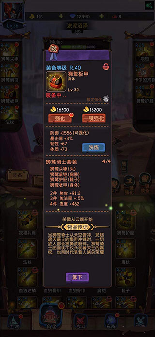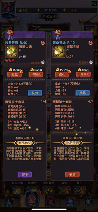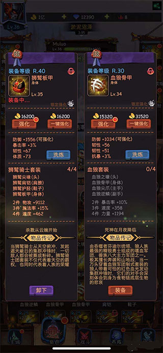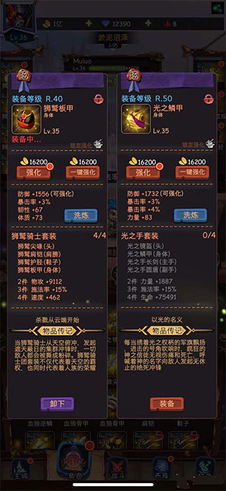 装备除了有品质和穿戴等级的区分以外,还有一些特定的装备是套装。套装是指指定的几件装备同时穿戴在同一个英雄的身上的时候会触发套装效果,套装效果甚至超过了装备自身的属性值,所以在同等的穿戴等级和品质前提下,要优先穿戴套装装备,能够百分比提升属性和施法率,让英雄战斗力更加强大。
