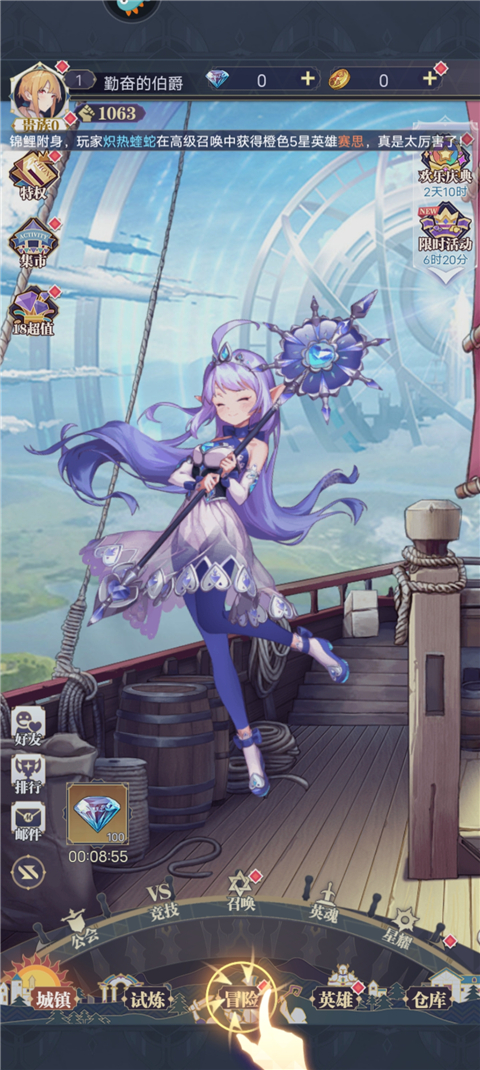 福利内容:普通召唤契约×1---普通寻宝凭证×2---刷新劵×1---钻石×100