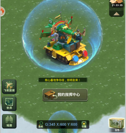 从屏幕左下方的入口可进入当前世界地图,查看自己所处的世界位置,当玩家加入集团军后可有集团军指挥官发起迁城,玩家同意后迁移到集团军长官的城附近。