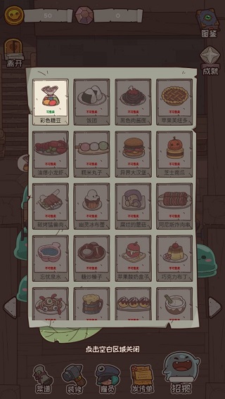4、聘请好大厨后,就可以开始解锁配方和食材,如下图所示: