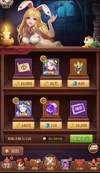 参与推图或者挑战试练塔可随机获得5星英雄,参与远航玩法也能获得稀有英雄碎片。冒险者大大可要努力提升自己呢。