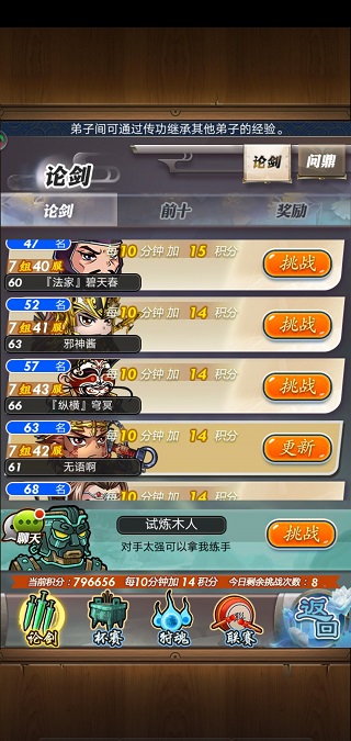 (注:因装备不同,建议大家可以用内丹和典籍结合调整速度,或者按这起手速度排列。主要承担攻击伤害的弟子推荐要使用暴击书,还得保证每个弟子速度不能低于600)