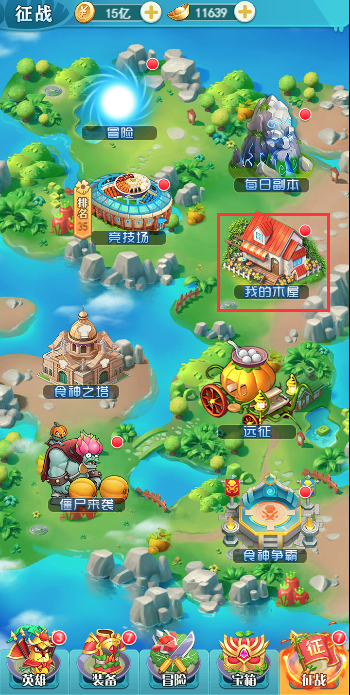 木屋入口位于主界面下方的“征战”页签中的“我的木屋”,点击后进入木屋界面: