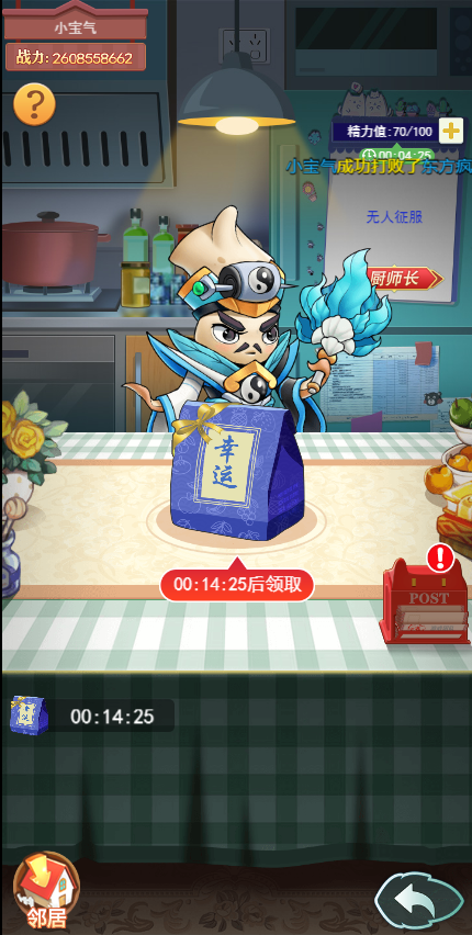 e)随着玩家每日收取的福袋越多,开启福袋需要的时间也越长(时间次日0点重置)